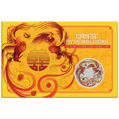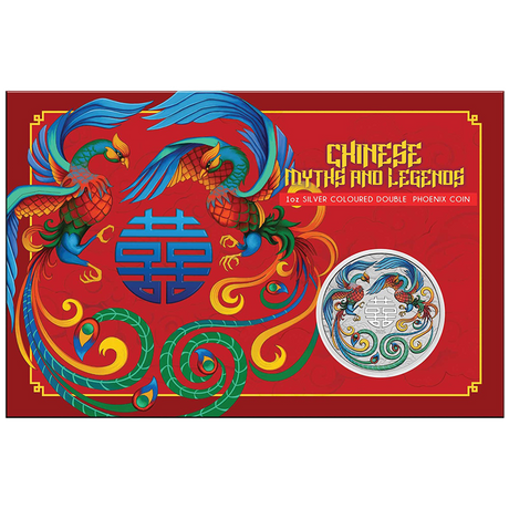 Chinese Myths and Legends Double Phoenix 2025 1oz Silver Vivid Coloured Coin in Card