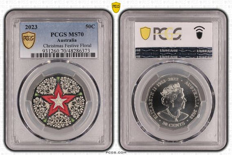 Christmas Festive Floral 2023 50c Coloured Coin - PCGS MS70 (48286373)