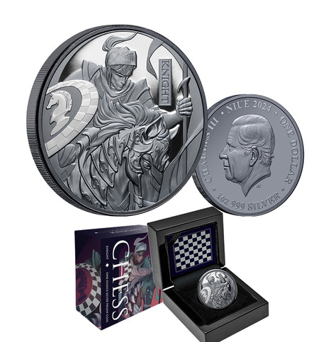 Chess Knight 2024 $1 1oz Silver Black Proof Coin
