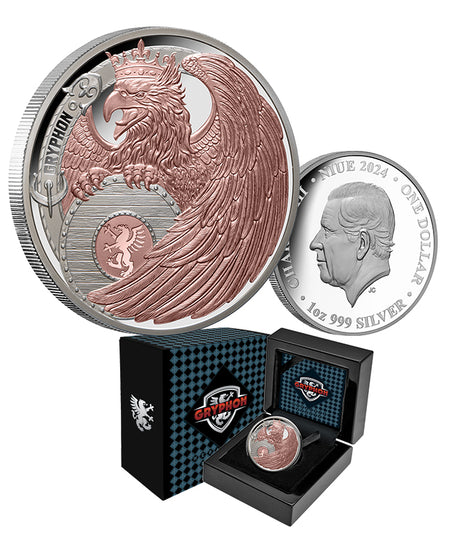 Heraldic Beasts 2024 $1 Gryphon Rose Gold-plated 1oz Silver Proof Coin