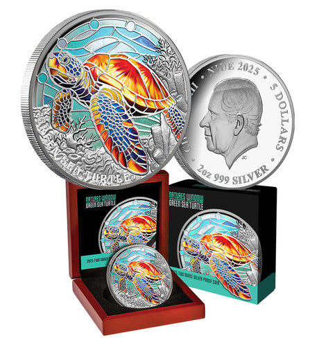 Natures Window Green Sea Turtle 2oz Silver Coloured Proof Coin