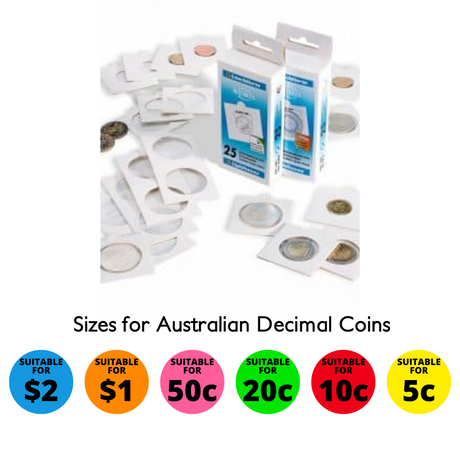 Coin Holder 2x2s Self Adhesive - Pack of 25 (Lighthouse MATRIX) - Sizes for Australian Decimal Coins