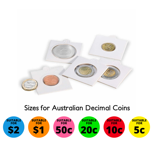Coin Holder 2x2s Self Adhesive - Pack of 100 (Lighthouse MATRIX) - Sizes for Australian Decimal Coins