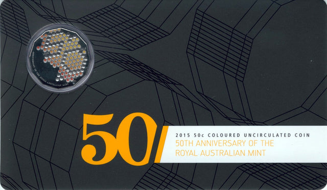 2015 50c 50th Anniversary of Royal Australian Mint Coloured Uncirculated Coin Card