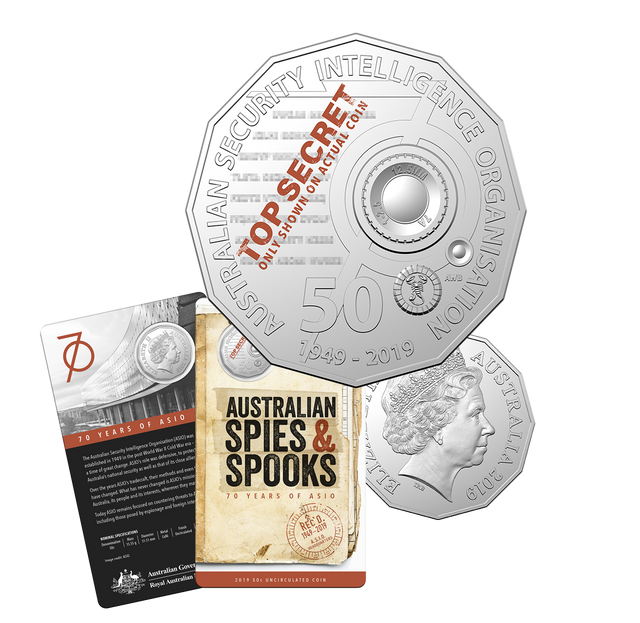 The Royal Australian Mint commemorates the 70th Anniversary of the Australian Security Intelligence Organisation (ASIO) with the release of Spies and Spooks - 70 years of ASIO.