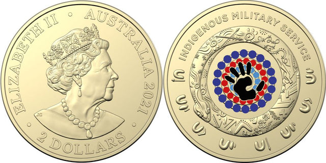 Commemorating Indigenous Australia’s longstanding tradition of serving in the military with a 2021 $2 Coloured Coin.