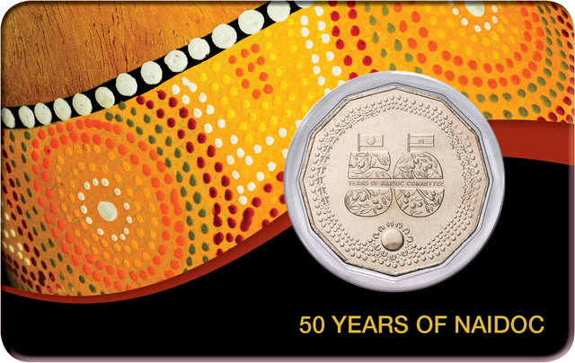 Struck by the Royal Australian Mint, this coin honours the 50th anniversary of NAIDOC (the National Aborigines and Islanders Day Observance Committee) being formed entirely of Indigenous peoples. Tracing its origins to Aboriginal groups in the 1920s that sought to raise awareness regarding the treatment of Indigenous Australians, NAIDOC oversees NAIDOC Week – a celebration of Aboriginal and Torres Strait Islander history, culture and achievements.